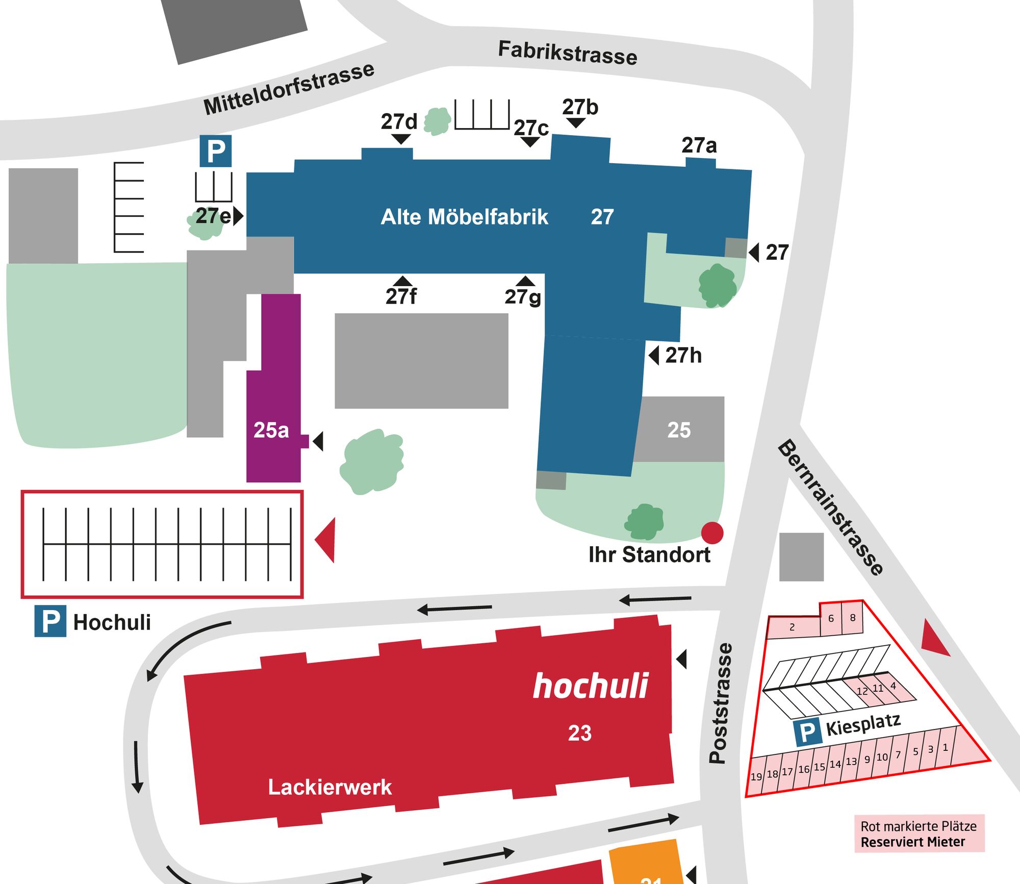 (Achtung: Reservierte Mieterparkplätze beachten!)